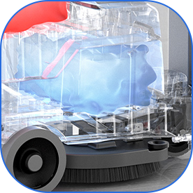 02清洗地面是环氧地坪时,需添加百洁垫,以免毛刷对环氧地面的磨损。