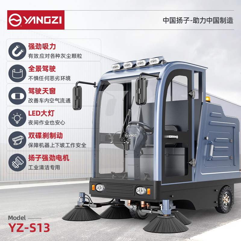 自营扬子扫地机YZ-S13 全封闭式驾驶 工厂车间小区物业车库广场环卫电动清扫车